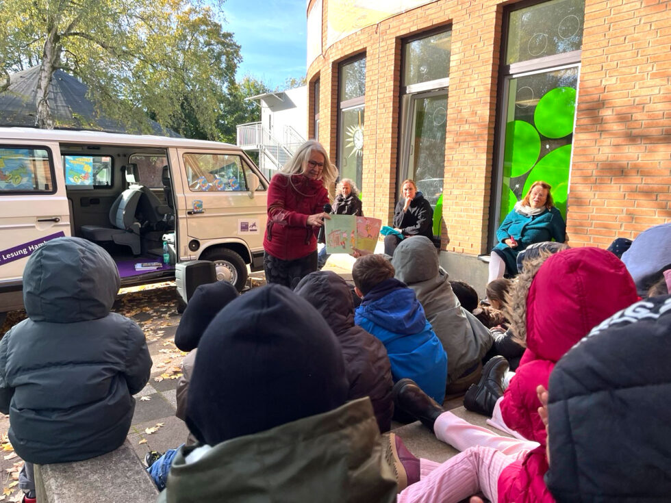 2. und 3. Klasse: Interaktive musikalische Lesung mit Umweltthematik zu meiner Geschichte »Löcher noch und nöcher« aus dem großen Vorlesebuch der Elbautoren »Volle Fahrt voraus!« (Eine Hamburger Maus reist zu den Eisbären, um der »Eisschmelz-Problematik« auf den Grund zu gehen).