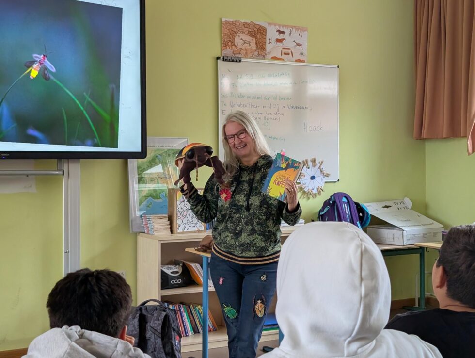 4. bis 6. Klasse: Interaktive Lesung zu meinem Kinderroman »Smillas Gespür für Käfer«. Ich lese Passagen aus dem Buch, bringe ziemlich große Käfer mit und spreche mit den Kindern nicht nur über Käfer, sondern auch über die Essenz von Freundschaft und über Superkräfte, die vielleicht nicht bloß Käfer vorbehalten sind. Begleitend präsentiere ich Illustrationen der Geschichte mit einem Beamer.